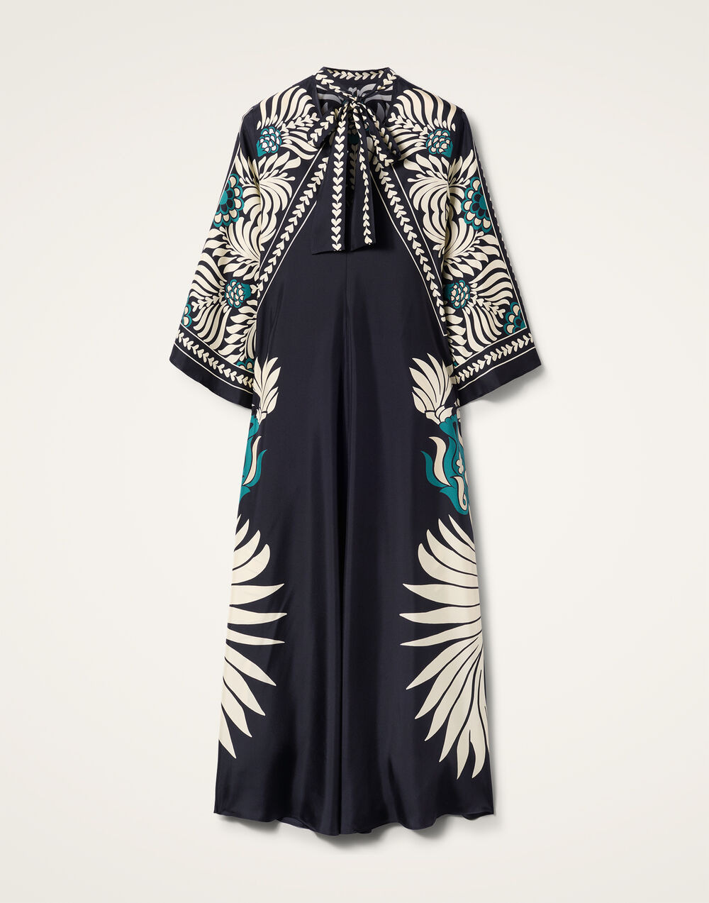 Shouldn't every babe have a dress called the Magnifico hanging in her closet? La DoubleJ believes so! With a stand-up collar, long sash at the back and draped waterfall sleeves, this special number will glide you around the room with an ease and an elegance reserved for the most exclusive of occasions. Cut in Como-made silk it arrives in this beguiling hand-placed print brimming with mystique and allure, destined for a decadent palazzo party and perfect for mediumalists and maximalists alike. Details & Fit - Silk twill - Hand-placed print - Stand-up collar - Back sash at neck - Maxi length - Waterfall sleeves - 100% Made in Italy - Composition: 100% Silk - The model is 179 cm tall and wears a size S - Garment length: 140cm