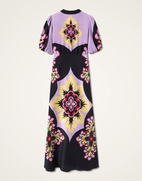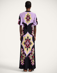 Sophisticated and sensual, this silhouette is as radiant as her namesake, the iconic Marlene Dietrich. The voluminous sleeves cinch in an elasticated cuff that can be pushed up to your desired level of oomph. An ankle-length, lightly flared skirt is pure romance while the deep V neckline is pure vixen. Crafted from crepe de chine with a print meticulously placed by Italian artisans, she’s perfect for stealing focus at your BFF’s wedding in Portofino. Details & Fit - Embroidered crepe de chine - Ankle-length dress - Elasticated cuff - Waisted - Pockets - Hand-placed print - Garment length: 145cm - 100% Made in Italy - Composition: 100% silk - The model is 178 cm / 5′ 10″ tall and wears a size S