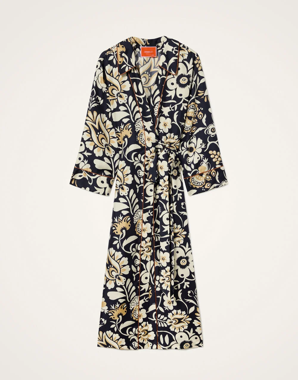 POV: your new crush shoots you a “you up?” and you need the perfect ‘fit to answer the door in. Enter the Midnight Dress, our sensual new wrap dress with that effortlessly alluring “Oh, this? I just threw this on” vibe. It has waist ties that can be adjusted to your desired level of va va voom (or that can be left open if you want to wear it as a jacket), and a chic collar and pockets for an elevated date night look. Details & Fit - Wrap Dress - 3/4 length sleeves - Pockets - Adjustable ties at waist - Collar - Maxi fit - 100% made in Italy - Composition: 100% silk