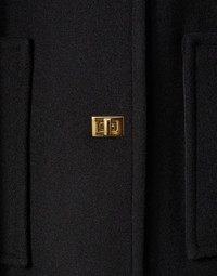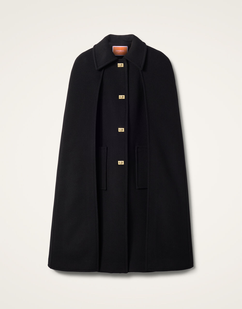 If the mysterious magic of Milan could be captured in a garment, this would be it. The drama is in the details of this romantic cape, which arrives in sumptuous but structured wool cady with two exaggerated slits down the side so you can still carry your favorite designer bag with you to your night out at the opera. Maximalists will delight in the statement-making placee print, while the all-black iteration comes with a printed silk lining that peeks through when you float through the streets of Rome. The gold toggle clasp adds a touch of masculine flare to an otherwise feminine shape, which pairs just as well with your favorite DoubleJ denim as it does with your red carpet gown. Details & Fit - Wool Cady - Long cape hits at mid calf - Slits through sides for hand accessibility - Contrast print lining - Gold toggle clasps down front - Built-in gilet - 100% Made in Italy - Composition: 75% Virgin Wool 25% Polyammide - The model is 181 cm tall and wears a size S - Garment length: 112cm