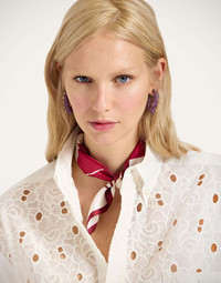 Give your outfit some Dolce Vita flair with our 100% Made in Italy Foulard crafted in collaboration with RED. The silk square is the oldest trick in the Milanese Sciura style book, always stashed in a handbag to be folded around the hair, wrapped loosely into a crisp shirt collar, or tied onto a wrist, ponytail or bag strap. Crafted from the finest silk twill from Lake Como, this smaller version makes a great pocket or collar companion and arrives in our hand-placed vibration-raising print. Not only will this item elevate your aesthetic but, with 100% of proceeds going to RED, you'll be playing a part in the vital fight against AIDS Details & Fit - RED Collection - 100% of proceeds donated to the fight against AIDS - Silk Twill - Square foulard - Hand-placed print - Composition: 100% Silk - Made in Italy - Measures 45 x 45cm