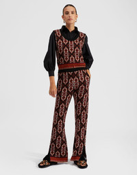 One of our new fall faves, this folk-inspired Mini Gilet is a cute layering piece with tons of personality. Crafted from 100% extrafine merino wool in a tapestry jacquard, this tank is cropped at the waist with solid ribbed details around the collar, armholes and hem. Styling is totally versatile depending on your vibe: a box-fresh white T-shirt, puff sleeve gown or the matching Knit Slit Pants are all fair game. Details & Fit - Wool jacquard - Solid ribbed detail around collar armholes and hem - Cropped fit - 100% Made in Italy - Composition: 100% Merino Extrafine - Model is 179 cm / 5'8" and wears size S | Chest: 80 cm / 31 in | Waist: 63 cm / 25 in | Hips: 89 cm / 35 in