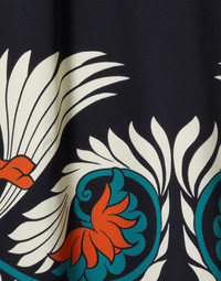 A short but chic cocktail dress ready to enter your party era. Whatever celebratory occasion you’re dressing up for this season, the Mini Supremes aims to flatter, with its long fluted sleeves and thigh-sitting silhouette expertly cut on the bias in satin with a hint of stretch. Because we’re La DoubleJ, we’re all about this elegant Tiles print placed by hand and, because we’re La DoubleJ, obviously we’re wearing it out for the cappuccino run, too. Details & Fit - Envers satin - Hand-placed print - Round neck - Pockets - Flared sleeve - Mini hemline - 100% Made in Italy - Composition: 96% Viscosa 4% Elastane - The model is 179 cm tall and wears a size S - Garment length: 80cm