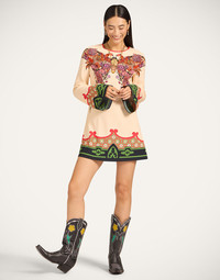 A short but chic cocktail dress ready to enter your party era. Whatever celebratory occasion you’re dressing up for, the Mini Supremes aims to flatter, with its long fluted sleeves and thigh-sitting silhouette expertly cut on the bias in our fluttery satin. Hand-finished with this utterly captivating butterfly motif to bring hope, transformation and rebirth into your soul this season. Details & Fit - Satin - Hand-placed print - Round neck - Pockets - Flared sleeve - Mini hemline - 100% Made in Italy - Composition: 96% Viscose 4% Elastane - The model is 177 cm / 5′ 9.7″ tall and wears a size S