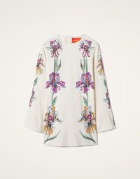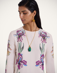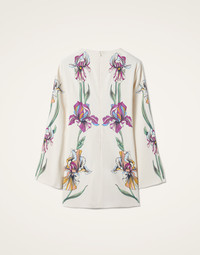 A short but chic cocktail dress ready to enter your party era. Whatever celebratory occasion you’re dressing up for this season, the Mini Supremes aims to flatter, with its long fluted sleeves and thigh-sitting silhouette expertly cut on the bias in our luxurious Italian satin. We’re all about this dazzling Iris print (which we'll be rocking at breakfast as well as at the ball 'cause we're obsessed with it.) Details & Fit - Satin - Hand-placed print - Round neck - Pockets - Flared sleeve - Mini hemline - 100% Made in Italy - Composition: 96% viscose 4% elastane - The model is 175 cm / 5′ 9″ tall and wears a size S