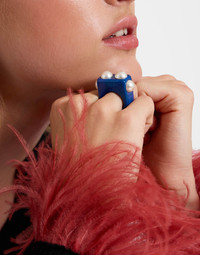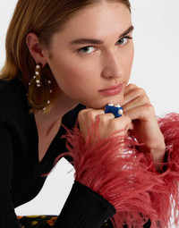 An iconic symbol of beauty and feminine power, we couldn’t think of a more fitting inspiration than the ancient Egyptian goddess Nefertiti when designing this statement jewelry piece. Crafted from solid colored resin, this oversized ring features gold studs across its rectangular band, which catch the light with every elaborate Italian gesture. Don't throw these around, amore - these delicate delights are precious. Details & Fit - Chunky rectangular ring - Colored resin with pearl studs - Size "S" 17mm diameter - Size "M" 19mm diameter - Composition: 90% Resin, 10% Zamak - Made in Italy