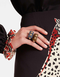 An iconic symbol of beauty and feminine power, we couldn’t think of a more fitting inspiration than the ancient Egyptian goddess Nefertiti when designing this statement jewelry piece. Crafted from solid colored resin, this oversized ring features gold studs across its rectangular band, which catch the light with every elaborate Italian gesture. Don't throw these around, amore - these delicate delights are precious. Details & Fit - Chunky rectangular ring - Colored resin with gold studs - Size "S" 17mm diameter - Size "M" 19mm diameter - Composition: 90% Resin, 10% Zamak - Made in Italy