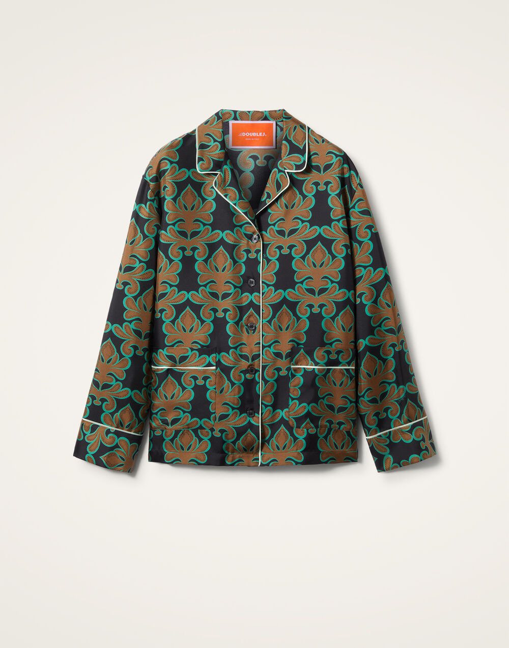 Low on effort and high on chill factor, this pajama inspired style is designed to effortlessly throw on for your schlep from bed to beach, bar or beyond. Crafted in our slinky silk twill with a slight sheen, its oversized lapel, patch pockets and cut give a nonchalant finish, which, FYI, we’re totally leaning into styled with our Better Than Your Boyfriend jeans. Details & Fit - Silk twill - Two front pockets - Piping details - Long sleeve - Shirt collar - Collar - Slightly oversized fit - 100% Made in Italy - Composition: 100% Silk - The model is 180 cm / 5′ 11″ tall and wears a size S