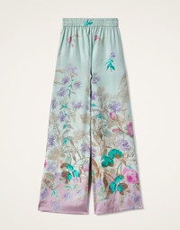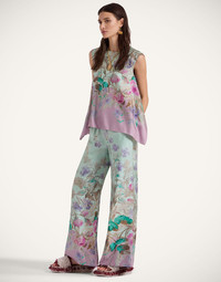 We cannot take credit for inventing the Palazzo Pant silhouette, but we will take credit for making them cool again. These trousers sit on the waist and fall flared, with a wide, breezy fit through the legs – like a skirt, but with the comfort of pants. A bellissima wardrobe addition in this chic and timeless Heath print. Details & Fit - Silk twill - Elastic waist - Concealed side pockets - Roomy fit - 100% Made in Italy - Composition: 100% Silk - The model is 180 cm / 5′ 11″ tall and wears a size S