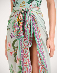 Let's take a moment to give a high-freakin' five for pieces like our Pareo scarf that can be worn year-round with everything you own. Cut from beautiful cotton voile, this happy maximalist piece can be a sarong on the beach; an evening shoulder shielder; hell, it could even do double duty as a table cloth for Amalfi-inspired lunches alfresco-style (why not?!). When you're back in town, wear it as a scarf, a travel shawl or a chic sofa throw to bring an Italiano vibe to your sacred space. Don't say we don't give you options, babe. Details & Fit - Cotton Voile - Placed Print - Composition: 100% Cotton - Made in Italy - Measures 135x135