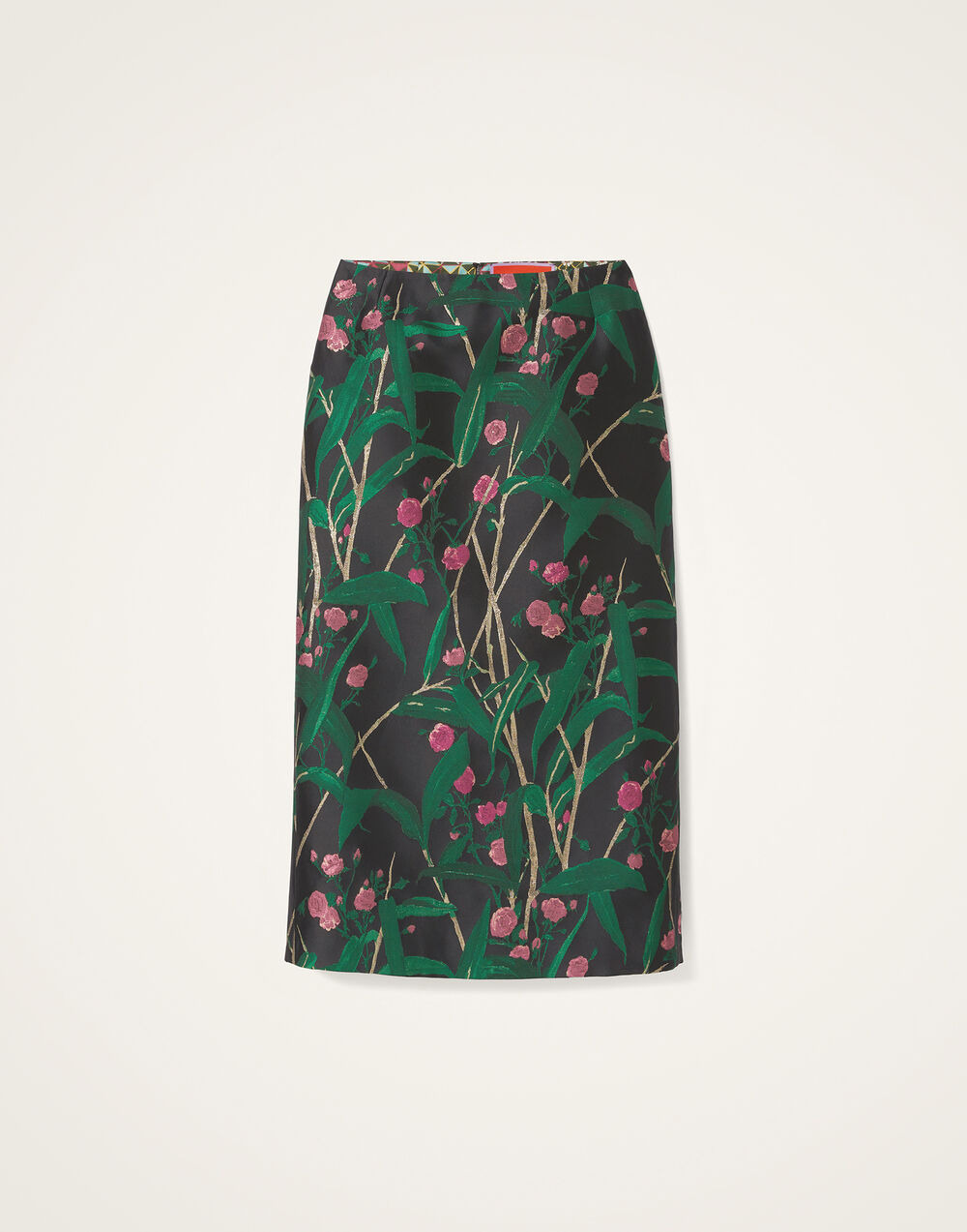 In our heart-pumping LDJ prints this baby is a bonafide mood-booster. Sitting low on your hips, it hems about the calf and has a slight flare for easy strolling. Woven with silk and metallic fibres, this Bamboo jacquard is a no-brainer for winter weddings, festive invitations or inviting some joy into your desk-to-aperitivo wardrobe. Pair with a mis-matched Boxy Shirt for a cute pattern clash and call it an outfit, ladies. Details & Fit - Jacquard - Hits approx mid-calf - Sits low on the waist - Slight cut with a slight A-line for ease of movement - Contrast lining - 100% Made in Italy - Composition: 50% Polyester 25% Silk 19% Viscose 5% Metal Polyester - The model is 180 cm / 5′ 11″ tall and wears a size S