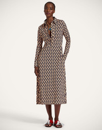 Want a more upscale spin on your everday summer style? The Perry Street Dress arrives in this exquisite figure skimming, flowy jersey, with a fitted crew neck top and romantic flowy skirt. We love her with stilettos for a Carrie Bradshaw moment, or under one of our gilets for a luxuriously layered moment. Details & Fit - Jersey - long sleeved - Crew neckline - hits mid calf - no pockets - 100% Made in Italy - Composition: 92% Viscose 8% Elastane - The model is 178 cm / 5′ 10″ tall and wears a size S