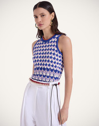 Short-sleeved and sweet, this knit polo reminds us of sunny days in Soho - a little bit flirty, and definitely fashion-forward. Crafted from a textured popcorn cotton with a crochet detail along the front, this is definitely a more decadent take on the simple spring sweater. Details & Fit - Short sleeve knit polo - Popcorn crochet - Fitted in the body - Made in Italy - Composition: 100% Cotton - The model is 180 cm / 5′ 11″ tall and wears a size S