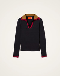 We took a classic long-sleeve polo shape and elevated it with an intricate contract picket detail along the collar and neckline. Delivered in this super soft cashmere-blend, we’ll be wearing this with everything from January to December. Details & Fit - Cashmere blend - Picket style edge along collar - Hits at hip - Made in Italy: - Composition: 85% Cotton 15% Cashmere - The model is 178 cm / 5′ 10″ tall and wears a size S