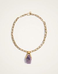 Delivered in precious Amethyst - a powerful stone associated with the Crown Chakra that aids in cultivating a connection with the Divine - we like to think of this pendant as a little joy portal to your soul, sitting ver your heart. Layer it up with necklaces from your own collection or leave it solo for more of a statement. Take care of these, amore. These pendants are precious. The portal is your entry point to higher states of consciousness, so these designs are reminders of that, intended to keep you connected to your higher consciousness. Details & Fit - Portal Pendant necklace - 24K Gold Plated Brass and Amethyst - Adjustable Chunky Chain is 55cm - 70% Brass 30% Amethyst - Made in Italy