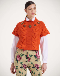 Just like our Portrait Sweater, this knit kit essential has chic, chunky braids down the front and across the shoulder, but this time with short sleeves and a romantic high neck. Small slits at the side hem give her a more waisted effect. Adorable with jeans or over our La Favorita slip dress. Details & Fit - Form fitting knit top - Short sleeve - Chunky braids down front and on shoulder - 100% made in Italy - Composition: 10%Cashmere 40%Merino Wool 25%Viscose 25%Nylon - The model is 181 cm / 5′ 11.3″ tall and wears a size S