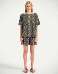 Step right up for your prettiest pins. With an elasticated waistband these beauties are a lesson in casual class. Keep it classic with a simple white tank, or throw them over a swimsuit on your next warm weather getaway. Perfect for vacationing in our cotton terry cloth and this toe-tapping Caper print that will elevate any black bikini or plain white shirt. Forte dei Marmi called: your sunlounger is waiting. Details & Fit - Cotton terry - Elastic waistband - Drawstring - Pocket at each side - 100% Made in Italy - Composition: 95% Cotton 5% Elastane - The model is 178 cm / 5′ 10″ tall and wears a size S