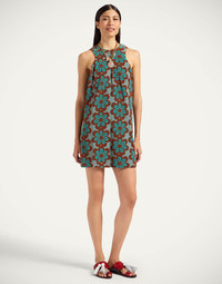 This dress was made to raise temperatures, amore, so we raised the hemline? Meet the new mini member of our Racer Dress family, crafted from our summer ready terry in this Pantelleria-inspired Caper print. Forgiving but elegant at the same time, it hugs the chest before falling into a straight column silhouette, while celebrating those sun-kissed shoulders. Ideal for throwing on over your suit to head straight from the beach to the aperitivo bar. Details & Fit - Racer neckline - Zip in the back - Column silhouette - Placed print - 100% Made in Italy - Composition: 95% Cotton 5% Elastane