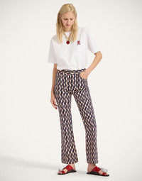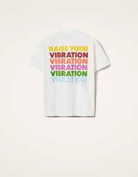 “Raise Your Vibration” is more than a motto here at La DoubleJ. It inspires everything we do - from the silhouettes we create, the colorful prints we design, the events we host, everything. Our goal is to lift you up and elevate your spirit to its highest peak possible. Crafted in our soft-as-silk 100% Italian jersey, this heart-opening tee arrives with our maximalist mission writ loud and proud across the back in glorious rainbow shades, while our Yin Yang JJ emblem sits over the heart on the front. Breathable and wrinkle-resistant, it can be worn whenever, wherever - under a suit jacket, over a swimsuit, to bed, to the bar. It’s also unisex so the entire crew can reach peak joy in this piece! Details & Fit - Round neck - Classic fit - Unisex - 100% Made in Italy - Composition: 100% Cotton - The model is 178 cm tall and wears a size S
