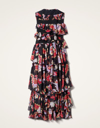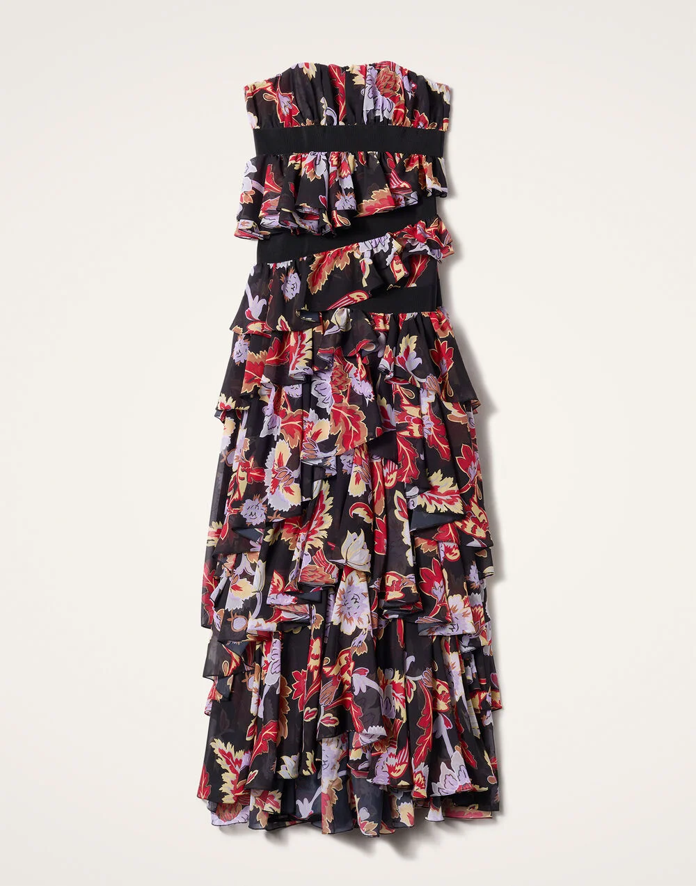 Screw the close-up - this dress requires a professional landscape photographer to capture it properly in all its cascading glory. Crafted from light-as-air printed Italian chiffon, the Red Carpet Dress has tiers from below the bust down to the hip, creating an alluring cinched shape up top while letting the skirt fly free in full voluminous drama. Wear it with flat sandals for a Grecian goddess vibe, or heels for a seriously upscale affair. We guarantee you'll feel like a VIP no matter the occasion, no red carpet necessary. Details & Fit - Chiffon - Strapless dress - Floorlength - Tiered skirt - Cinches down bust - 100% Made in Italy - Composition: 100% polyester - The model is 178 cm / 5′ 10″ tall and wears a size S