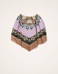 Who says a poncho can't be "piccolo"? Delivered in this sleek Italian satin with a touch of stretch, the Mini Poncho arrives in our hand-placed prints with fringes all along the hem for extra flourish. An easy everyday outfit upgrader you can also lip it over a silk dress at a wedding when the sun goes down for extra wow. Details & Fit - Envers Satin - Mini Poncho with Fringes - Reversible - Placed print - Composition: 96% Viscosa 4% Elastane - Made in Italy
