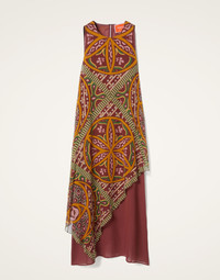 Made for the multi-hyphenate maven who’s part street-style icon, part music festival fashionista, this dress is the cool girl’s answer to the column dress, arriving with a classic tank top cut that flows out into full Italian foulard fabulousness. Wear her with bare legs and boots for Burning Man bellezza, or layer her over trousers for an unequivocally cool daytime look. Details & Fit - Silk chiffon - Sleeveless - No pockets - Crew neck - Floaty scarf skirt - 100% Made in Italy - Composition: 100% silk