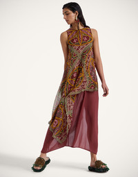 Made for the multi-hyphenate maven who’s part street-style icon, part music festival fashionista, this dress is the cool girl’s answer to the column dress, arriving with a classic tank top cut that flows out into full Italian foulard fabulousness. Wear her with bare legs and boots for Burning Man bellezza, or layer her over trousers for an unequivocally cool daytime look. Details & Fit - Silk chiffon - Sleeveless - No pockets - Crew neck - Floaty scarf skirt - 100% Made in Italy - Composition: 100% silk - The model is 175 cm / 5′ 9″ tall and wears a size S