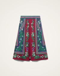 Our latest Santa Monica skirt marries West Coast cool with a little Milanese magic, hand-printed in Italy by our artisans in this vivid Regalia motif. It’s cut with all the easygoing style of the original, with a gentle A-line flare, mid-calf cut and inverted front pleat that encourages a hint of volume, ready to sweep you from desk to dancing this party season. Details & Fit - Sable stretch - Fitted at the waist - Falls gently into a flared A-line shape - Hits mid-calf - Inverted front pleat - Side zip - Composition: 96% Viscosa 4% Elastane - Made in Italy - Garment length: 75cm