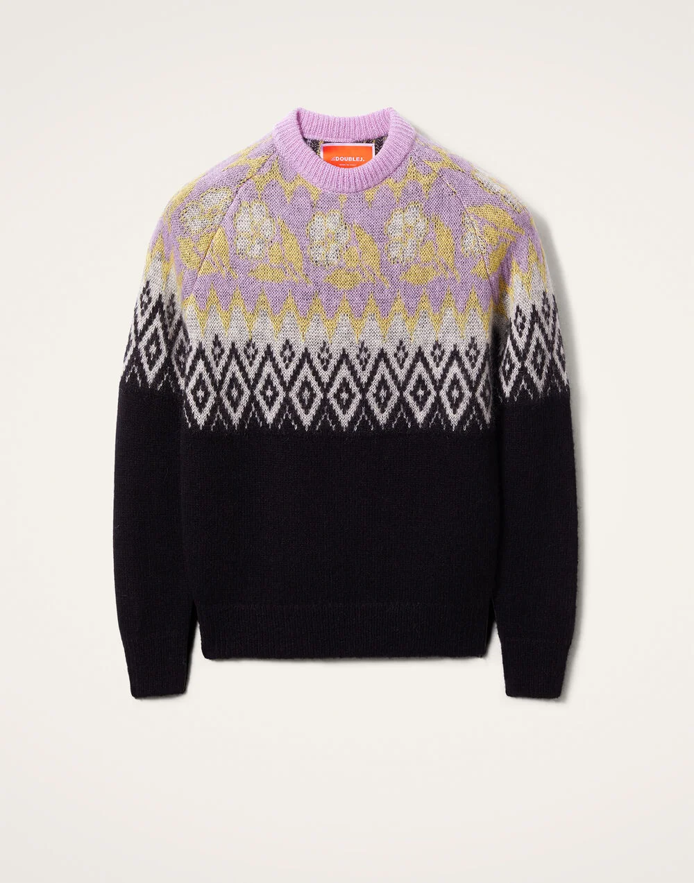 To create the perfect apres-ski sweater, we took the classic Fair Isle silhouette and reimagined it through our ebullient Italian lens. Crafted from a sumptuous Alpaca and mohair blend, it’s the only thing you’ll want to wrap yourself up in post-slalom. Through it over your ski top for a slope side lunch, or with jeans as you hit the Chamonix streets for a little retail therapy. Details & Fit - Mohair alpaca blend - Crew neck sweater - Hits at hip - Ribbed hem - Composition: 42% Alpaca Wool 32% Polyamide 13% Mohair 13% Wool - The model is 180 cm / 5′ 11″ tall and wears a size S