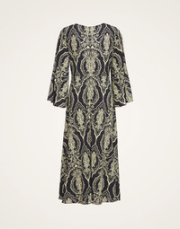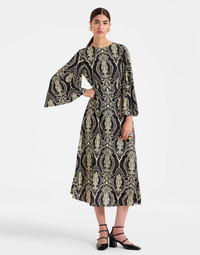 How's about a little something sweet for your next wear-anywhere, all-season investment? One for our sisters who prefer a figure-skimming look, the Sorella Dress is as diverse as it is chic and works as well before 9 as it does after 5. We've got our eye on it for its flattering hourglass fit that truly nips the waist and forgiving bell sleeves that waterfall from slim-cut shoulders. Easy enough for everyday polish cut in comfy flowy jersey - dial things up a notch with vintage earrings and our chic Tones Wedges. Details & Fit - Flowy jersey - High neck - Bell sleeves - Concealed side pockets - Hourglass shape - 100% Made in Italy - Composition: 92% Viscose 8% Elastane - The model is 179 cm / 5′ 10.5″ tall and wears a size S