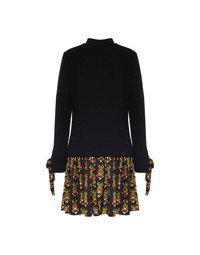 The Sporty Dress puts a cute style spin on the humble sweatshirt so you don’t have to. While its black sweatshirt top does the casual-comfy-cosy thing, the silky twill flippy skirt in our enchanting Scarab print adds a flirty, dressy touch. As for the details, we love that mock neckline and ribbons on the sleeves you can tie or let loose. It’s cute for city cocktails, but just as easy for a casual Sunday. You know we love a little high-low mix. Details & Fit - Black sweatshirt top made from 100% cotton - Attached miniskirt made from silky twill - Mock neckline - Ribbons on sleeves - 100% Made in Italy - Composition: 100% Cotton + 100% Polyester - The model is 181 cm tall and wears a size S - Garment length: 85cm
