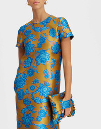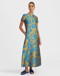 LDJ’s first ever dress is Hottie by name and hot mama by nature arriving for all your exclusive RSVPs in this shimmery Hottie jacquard. Riffing off the nonchalance of a classic T-shirt dress, it is cut slim in the shoulders, generous in the hips for a silhouette that balances elegance with ease. Pockets? We got ‘em, plus a long A-line hem for sassier swooshing. Wear with platforms for Saturday night and, heck, Sunday brunch with sneakers if that;s your kind of thing. Details & Fit - Jacquard - Slim in the shoulders, generous in the hips - Classic T-shirt silhouette - Falls into an A-line - Long maxi length - Hidden side slit pockets - Concealed back zipper - 100% Made in Italy - Composition: 86% Polyester 6% Metal 5% Silk 3% Polyamide - The model is 180 cm tall and wears a size S - Garment length: 135cm