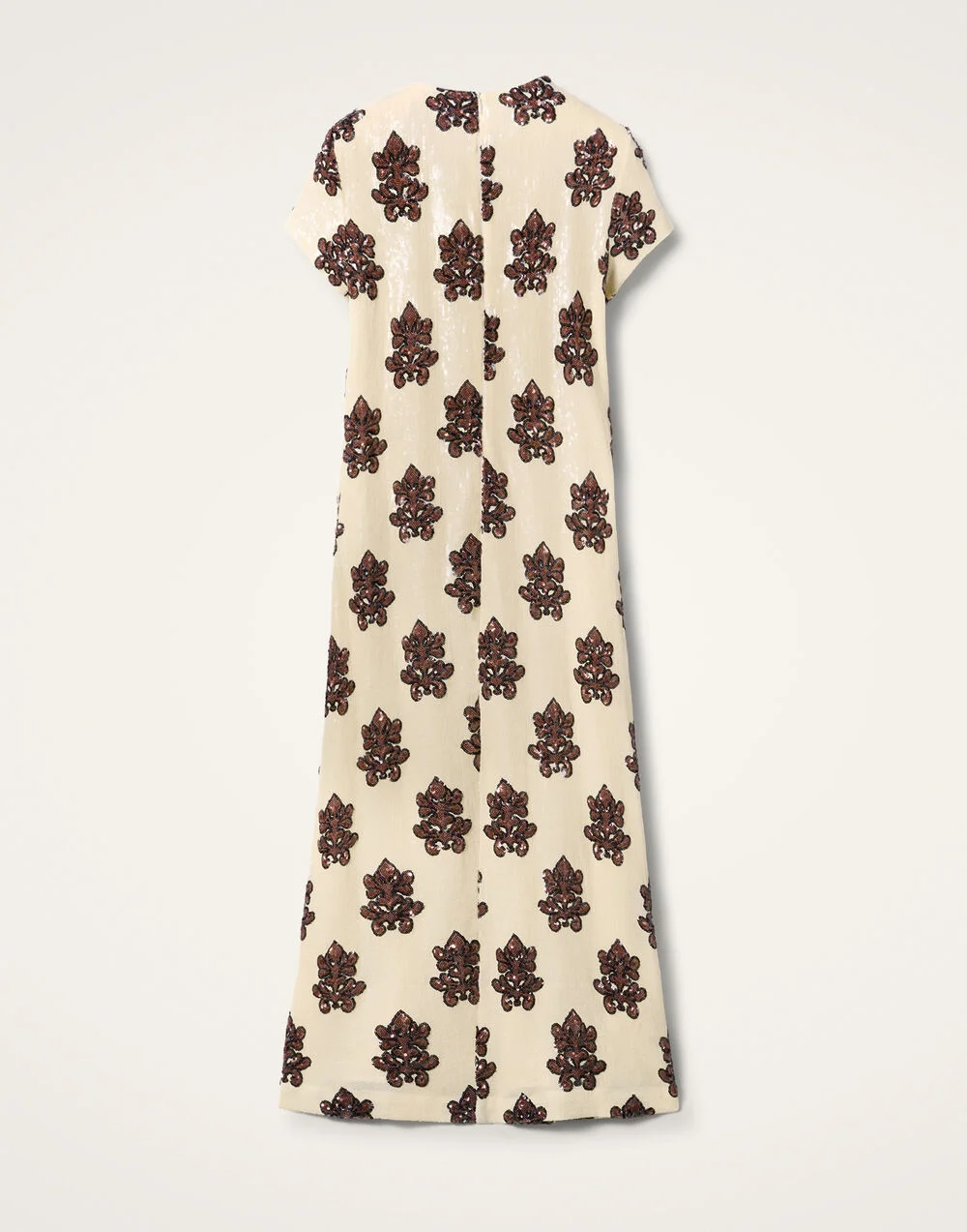 There’s nothing quite like your first love. For us, that’s the Swing Dress, our first silhouette which we’ve reimagined in luxurious textiles and intricate embroideries for our new series of Super Swings! Same classic A-line shape, same slip shoulders, same effortless elegance… Just now with more structure, substance and sparkle for an elevated take on our best-selling dress. This version is crafted in our majestic Renaissance-inspired Cherubs print in our elegant fil coupe. Details & Fit - Paillettes - Slim in the shoulders, generous in the hips - Classic T-shirt silhouette - Falls into an A-line - Long maxi length - Hidden side slit pockets - Concealed back zipper - 100% Made in Italy - Composition: - The model is 178 cm / 5′ 10″ tall and wears a size S