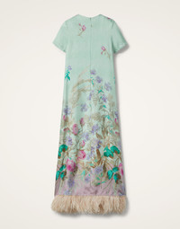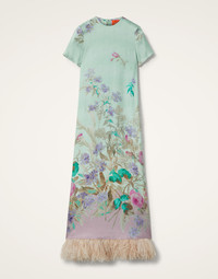 You never forget your first love and this is the story of our Swing Dress. LDJ’s very first model, this easiest of silhouettes is cut slim in the shoulders, generous in the hips, to be adored by babes of all ages. Done in our fluid silk twill that doesn’t cling a bit, it’s finished with a fabulous contrast feather trim that honestly finds a fan club wherever you take it. With its understated T-shirt silhouette, anything goes. Details & Fit - Silk twill - Hemline trimmed with ostrich feathers - Slim in the shoulders, generous in the hips - Classic T-shirt silhouette - Falls into an A-line - Hits just above the ankles - Hidden side slit pockets - Concealed back zipper - 100% Made in Italy - Composition: 98% Silk 2% Ostrich Feathers - The model is 177 cm / 5′ 9.7″ tall and wears a size S