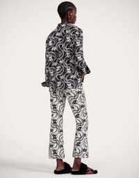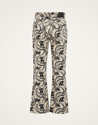 Haven’t you heard? Shins are in, sister! We took our best-selling flare jean and cropped it - same super high waist and booty-boosting shape, same perfect amount of stretch, now with the mood-boosting designs of our latest collections, applied using an intricate laser-print technique. Details & Fit - Laser-printed stretch denim - High waist - Button fly and zip closure - Wide flare - Pockets in front with fifth internal piccolo pocket - Embroidered back pockets - 100% Made in Italy - Composition: 98% Cotton 2% Elastane - The model is 178 cm / 5′ 10″ tall and wears a size S