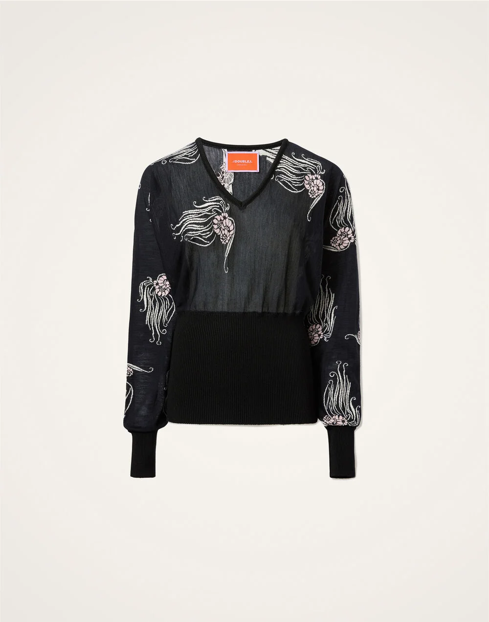 We love a souped-up wardrobe staple here at La DoubleJ. The Winged Knit Top delivers on ease and elegance in equal measure with it’s chicissimma crescent silhouette across the front and shoulders and dramatic deep v in the back. With a ribbed waist, this gives you a gorgeous hourglass silhouette (no control-top undies required!) We love this jeans to elevate an office look, or paired with one of our floaty skirts for a beautiful contrast of structure and romanticism. Details & Fit - Italian wool top - High neck in front - Deep V in back - Ribbed waist - Winged sleeve - Made in Italy - Composition: 93% Wool 7% Polyamide - The model is 176 cm / 5′ 9″ tall and wears a size S