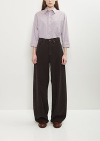 6397 chocolate brown jean with wide oversized legs in cotton corduroy. Features 5-pocket construction and button and zip-fly fastening. Relaxed fit. Also available in: Parsnip . Worn with: Soft Leather Loafer . Sizing: Waist (24-29). Coco is 5'9.5” (176.5cm), bust 31”, waist 24”, hips 35” and wears a size 25. Color: Chocolate. 100% Cotton. Made in Italy. FW2563004
