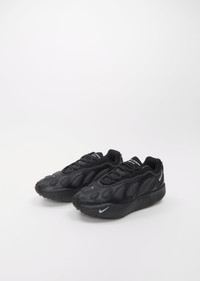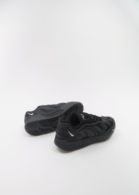 CDG Homme Plus x Nike black Air Max 96 sneaker with IPSA sense (Improvise. Scavenge. Protect. Adapt.) details for a new silhouette in padded leather. Features a mesh tongue with printed logo, debossed logo at toe, embroidered logo at back lateral heel, debossed branding at shank, a tonal lace-up closure, a textured rubber midsole and a durable rubber sole. Also available in: White and Pink / White . Sizing: US Men's (5-8.5). Men's 5 = Women's US 6.5 Men's 5.5 = Women's US 7 Men's 6 = Women's US 7.5 Men's 6.5 = Women's US 8 Men's 7 = Women's US 8.5 Men's 7.5 = Women's US 9 Men's 8 = Women's US 9.5 Men's 8.5 = Women's US 10 Color: Black. Upper: Leather and Synthetic. Sole: Rubber. Imported. SS25HPM13