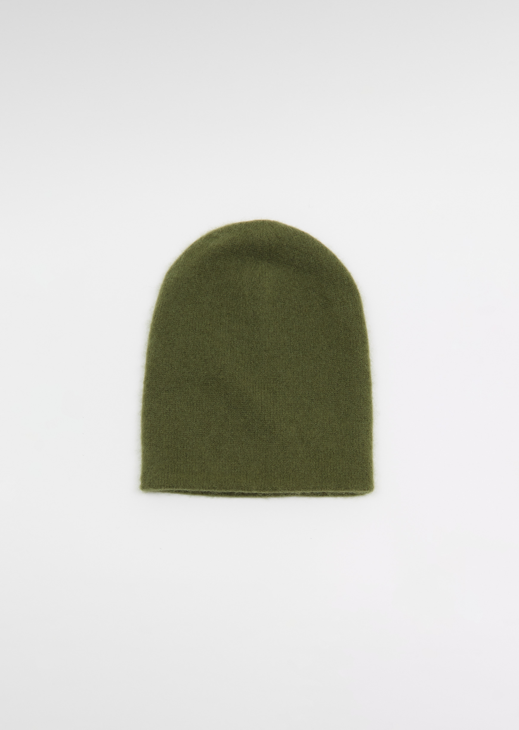Frenckenberger mountain green beanie in mid-weight cashmere and silk blend knit. Also available in: Black . Sizing: One size. Color: Mountain Green. 75% Cashmere, 25% Silk. Made in Mongolia. FW25FR002