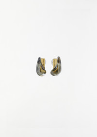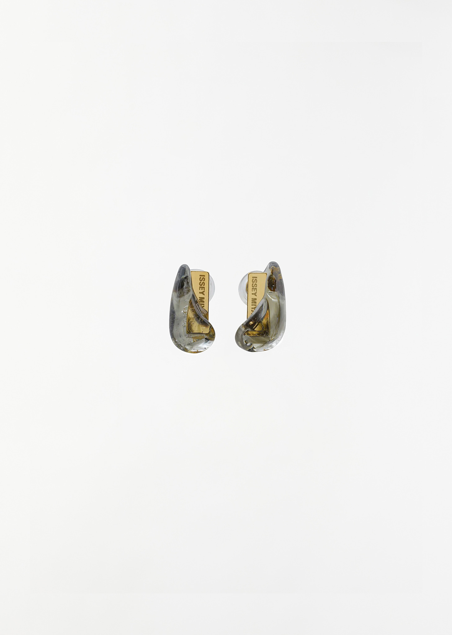Issey Miyake gold-tone earrings with an organic shape handcrafted in glass and stainless steel. Features a subtle logo detail and a push back closure. Sold as a pair . Measures approximately: .75 H x .37 W in. Color: Gold. Glass, Partly: Stainless Steel. Made in Japan. SS24IM028