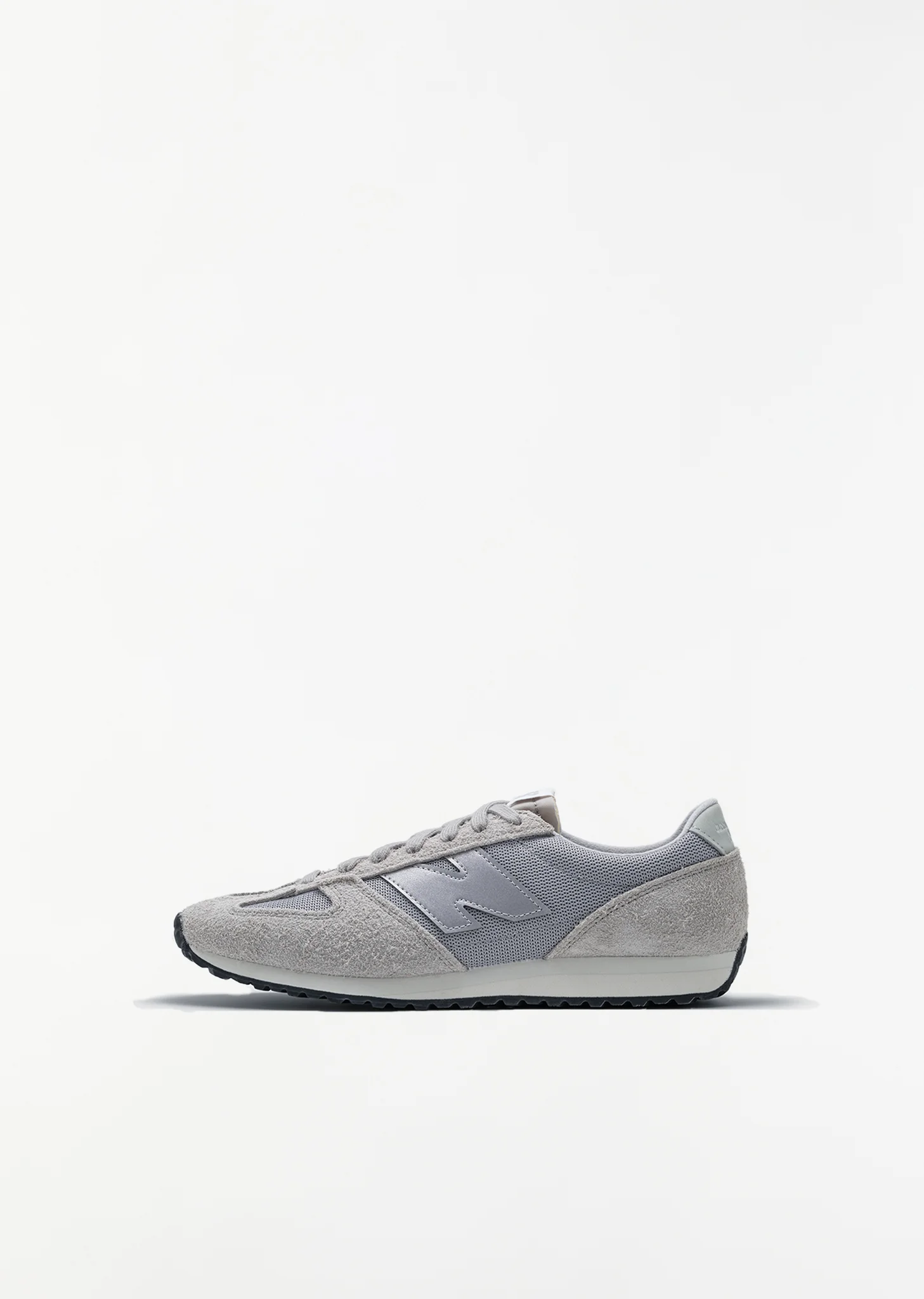 Junya Watanabe MAN in collaboration with New Balance grey signature U471 low top lace-up sneaker with a slim silhouette in breathable mesh underlay and rugged suede overlays. Features tonal laces fastening, exposed-foam tongue, EVA midsole, logo detail at side and back heel, and a r ubber outsole with classic herringbone pattern. Also available in: Black . Sizing: Men's US (7-11). Color: Gray. Upper Underlays: 100% Synthetic Mesh. Overlays: 100% Leather. Outsole: 100% Rubber. Imported. FW25JWM16