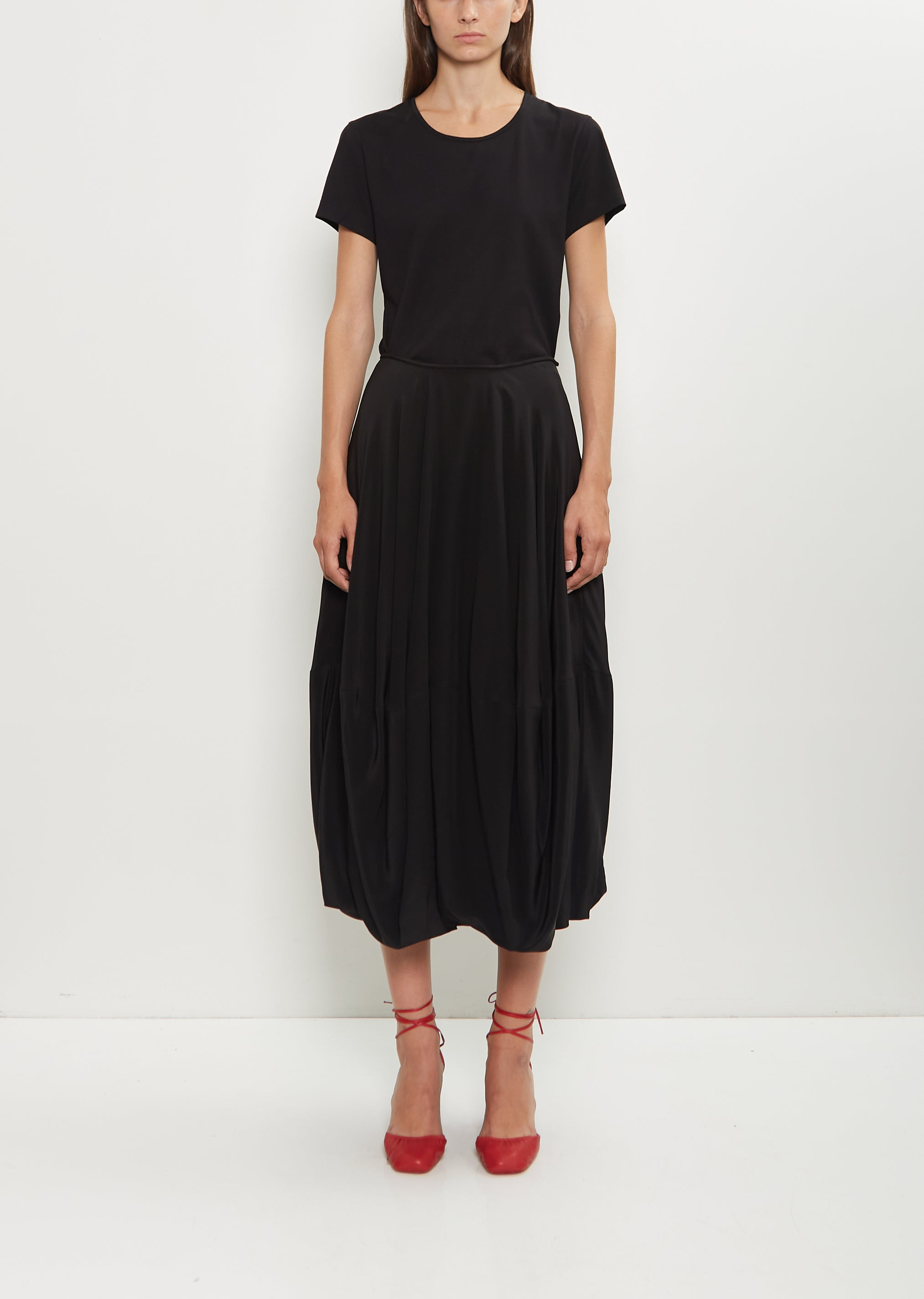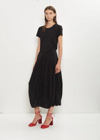 Lemaire black skirt with a balloon silhouette in fluid and soft silk crepe de Chine. Features a clean front, a thin waistband and a hook and eye zipper closure at side. Comes lined in tonal cotton. Worn with: Cotton Fitted T-Shirt — Black and Micro Lather Ballerina 85 . Sizing: European (32-40). 32= XXS, 34=XS, 36=S, 38=M, 40=L. Amelia is 5' 10.5” (179cm), bust 32”, waist 24”, hips 35” and wears a size 36. Color: Black. 100% Silk. Lining: 100% Cotton. Made in Portugal. FW25CL039