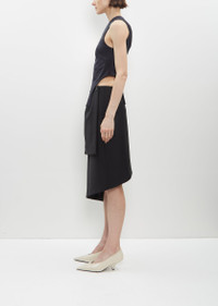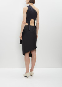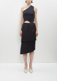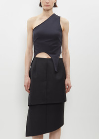 Marie Adam-Leenaerdt black off-shoulder top with two elongated panels in elasticated nylon. Worn with: Spiral Tailoring Skirt. Sizing: European (34-38). 34=XS, 36=S, 38=M. Nora is 5'10.5" (179 cm), bust 32", waist 24", hips 34.5" and wears a size 36. Color: Black. 80% Nylon, 20% Elastane. Imported. PF24MAL14