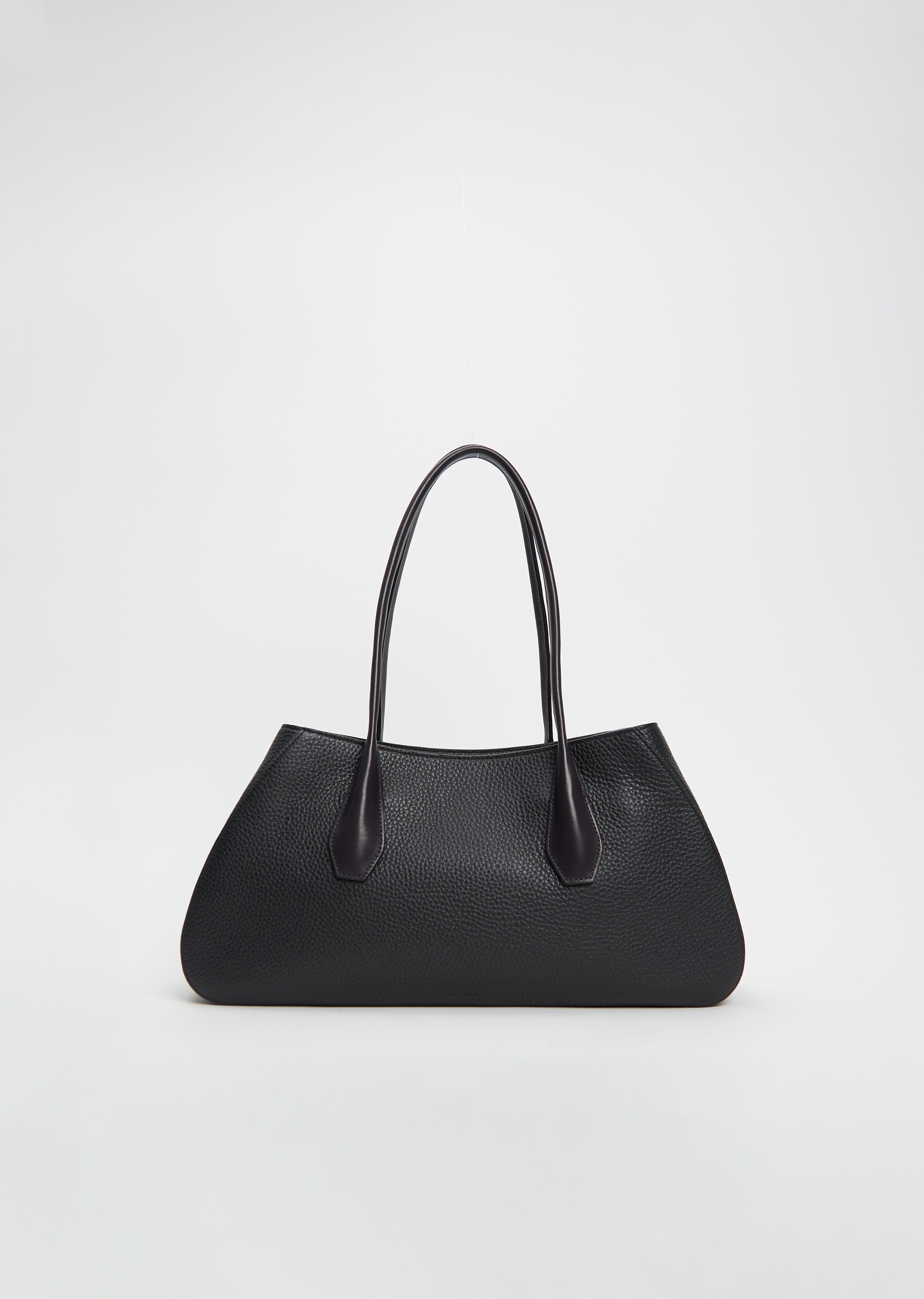 The Row black geometric shoulder bag with tubular handles and a flat base in soft grained leather. Features a hand-stitched construction, an interior zipper pocket and a slip pocket. Comes lined in tonal soft leather. Also available in: Dark Brown Ans . Color: Black Ans. 90% Bos Taurus Switzerland, 10% Bos Taurus France. Made in Italy. FW25TR021