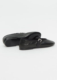 The Row black classic mary jane flat shoe with a rounded toe crafted in soft nappa leather. Fully lined in tonal leather and finished with a thin leather sole with a small stacked heel. Sizing: European (36-41). Color: Black. 100% Nappa Leather. Made in Italy. SS25TRE06