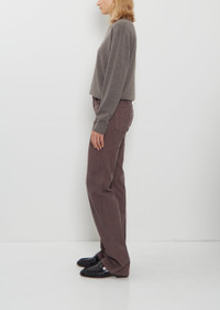 The Row mud brown low-rise pant with slightly flared legs and 5-pocket construction in Japanese cotton corduroy. Features tonal topstitching and a horn button and zip-fly fastening. Sizing: Waist (24-29). Alina is 5' 9” (175cm), bust 31”, waist 23", hips 34” and wears a size 25. Color: Mud. 100% Cotton. Made in Japan. PS26TR005