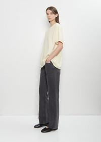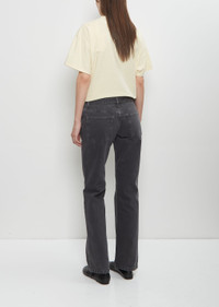 The Row faded black low-rise 5-pocket jean with slightly flared legs in stone washed cotton denim. Features tonal top stitching and zip-fly closure. Sizing: Waist (25-29). Danelya is 5' 9.5” (177cm), bust 30.5”, waist 22.5”, hips 34.5” and wears a size 25. Color: Faded Black. 100% Cotton. Made in Italy. SS25TR043