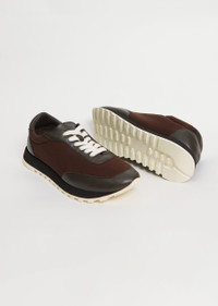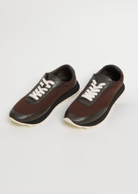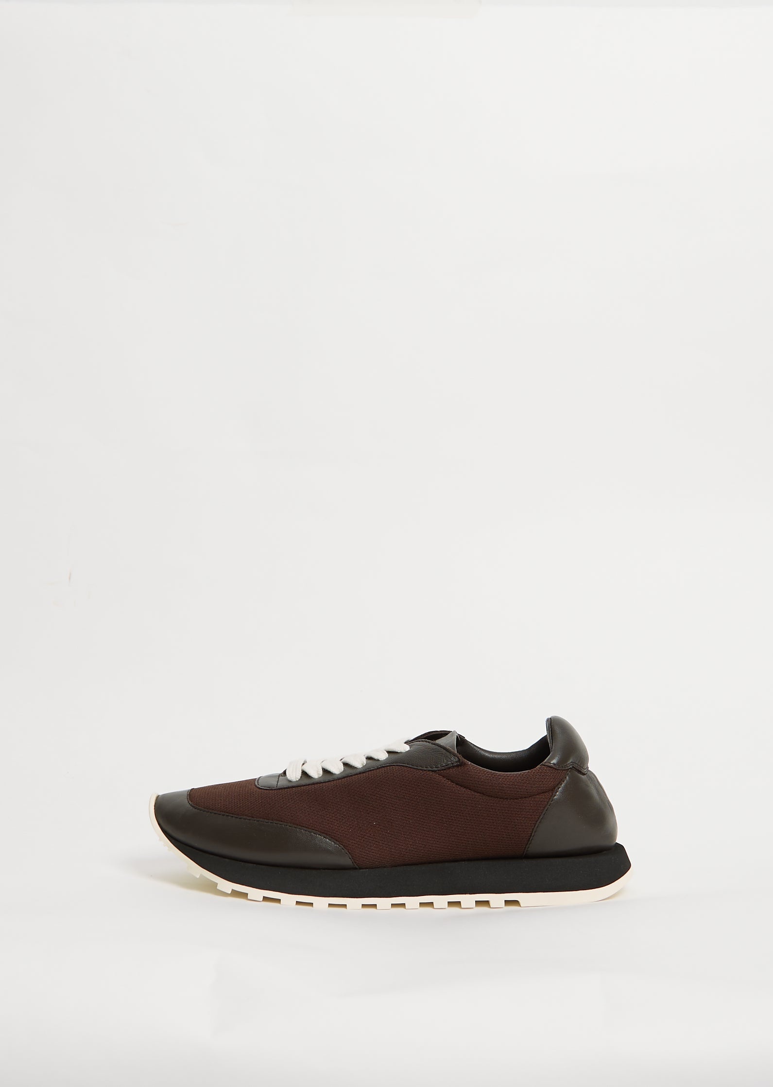 The Row brown running sneaker in technical soft mesh and calfskin suede with cream laces and matching rubber treaded sole. Sizing: European (36-40). Color: Brown. Technical Mesh, Calfskin Suede. Made in Italy. TR044WI22 This item is exempt from all promotions.