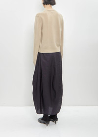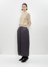 Toteme fawn beige V-neck sweater in featherlight soft cashmere knit. Features an embroidered monogram at sleeve and ribbed trim finish at neckline, cuffs and hem . Regular fit. Also available in: Navy . Sizing: Universal (XS-L). Mila is 5' 9.5” (177cm) , bust 30”, waist 24”, hips 35” and wears a size small. Color: Fawn. 100% Cashmere. Imported. SS25TO014