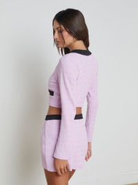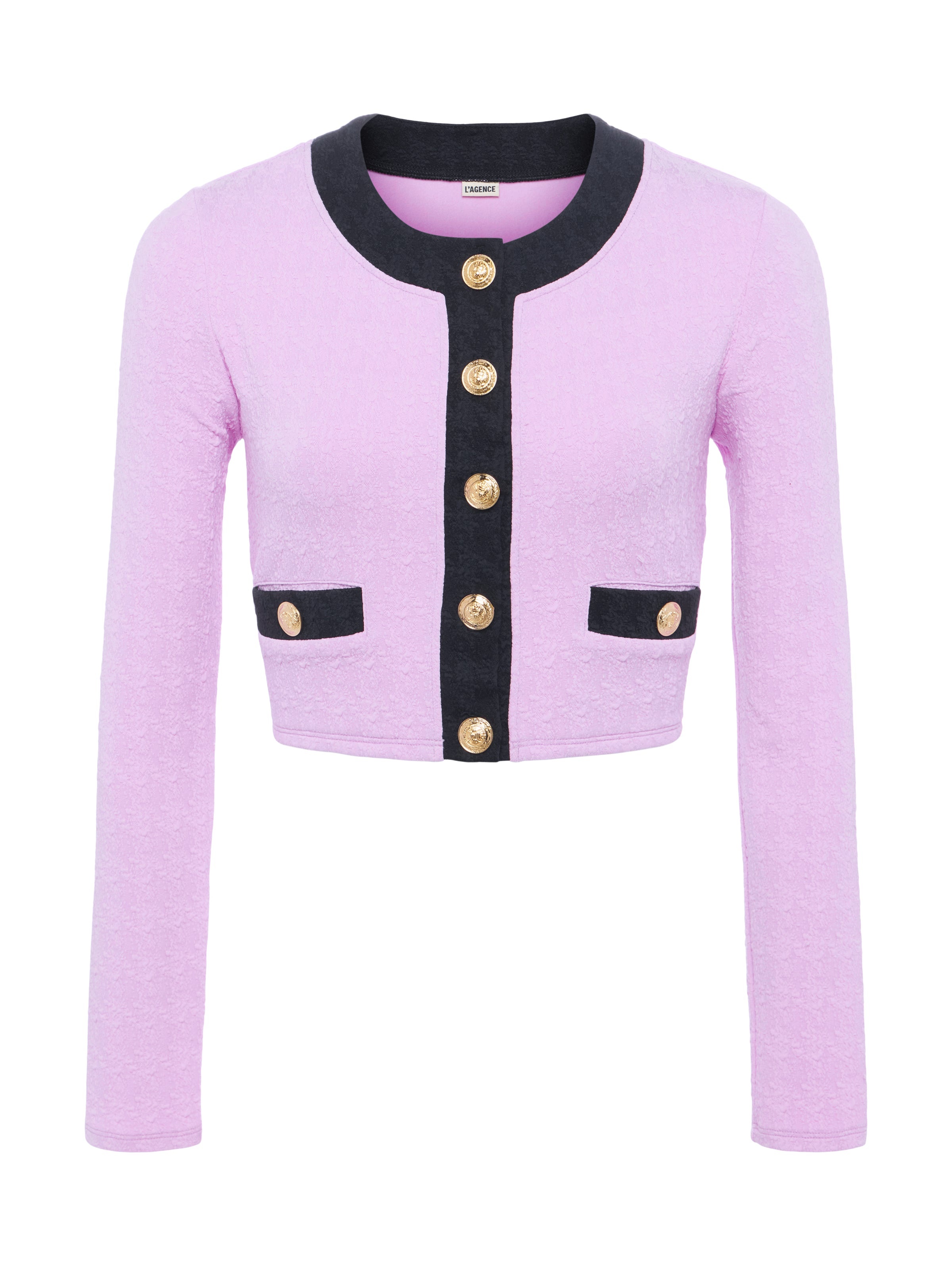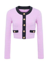 Meet the water-safe cardigan cover-up you didn’t know you needed. Pair with our coordinating violet swimsuits for a sophisticated beach-to-boat look. • Water-safe textured boucle fabric • Embossed dome buttons Style No. LG5AM52-LVBK DETAILS & FIT - Model Details: Height 5'10" | Bust 32" | Waist 24" | Hips 34.5" | Wearing Size XS - About 16" From Shoulder to Hem - Sleeve Length: 24.75" MATERIALS & CARE Composition - 93% Nylon 7% Spandex - Imported